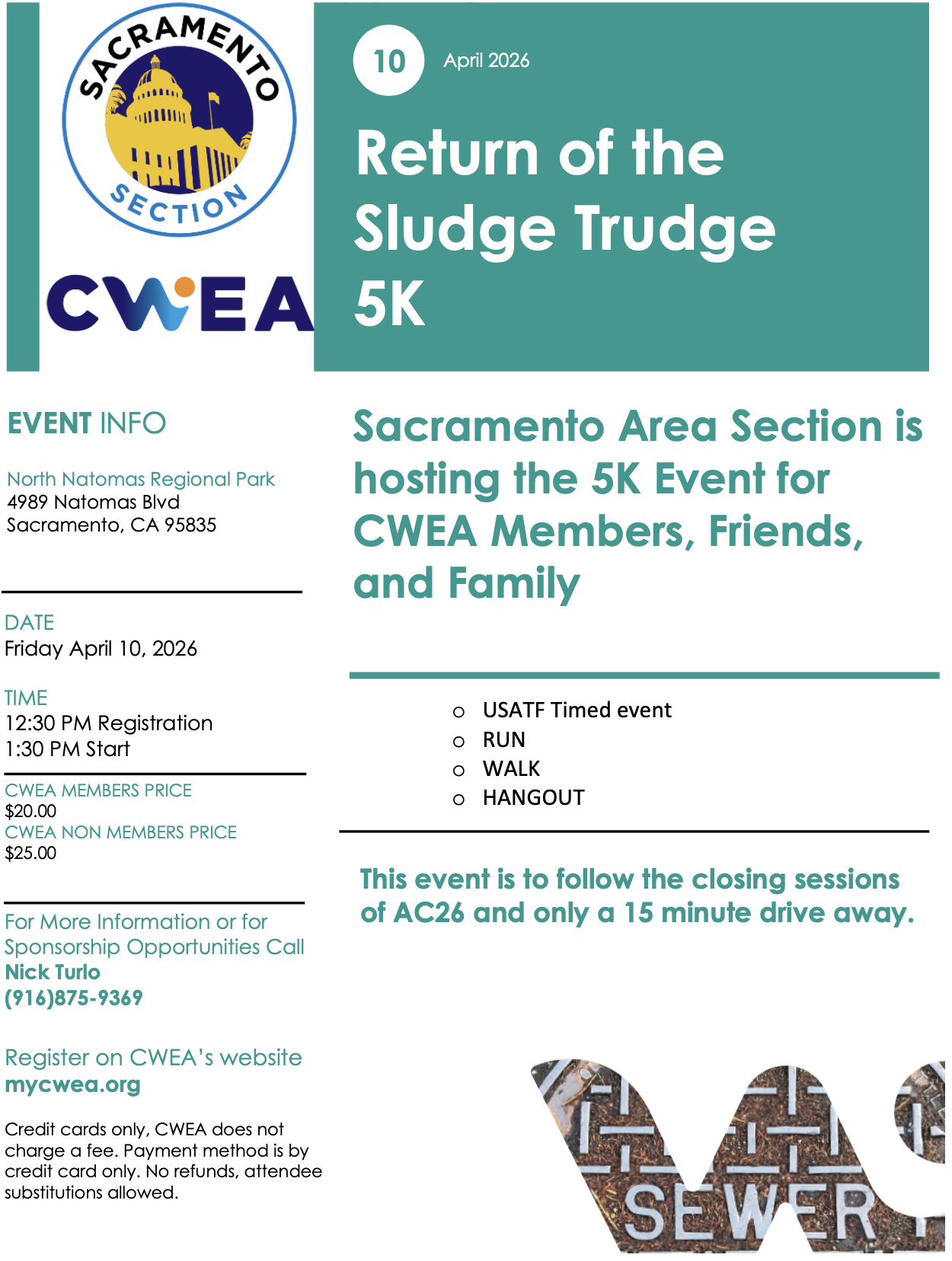 Sacramento Area Section is hosting the 5K Event for CWEA Members, Friends, and Family